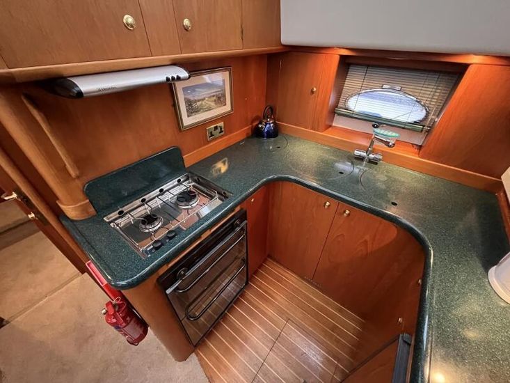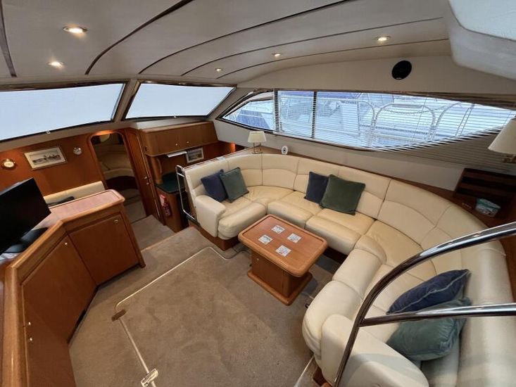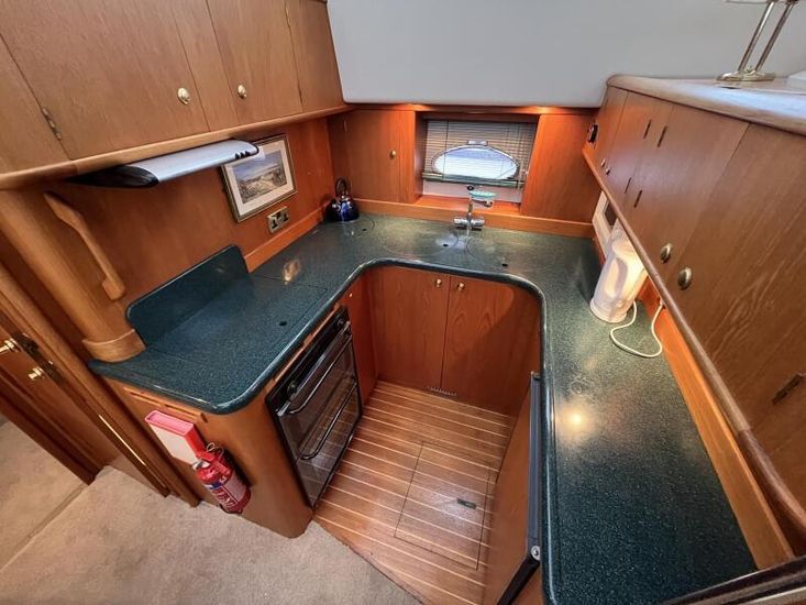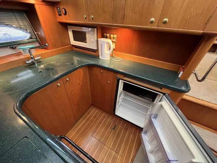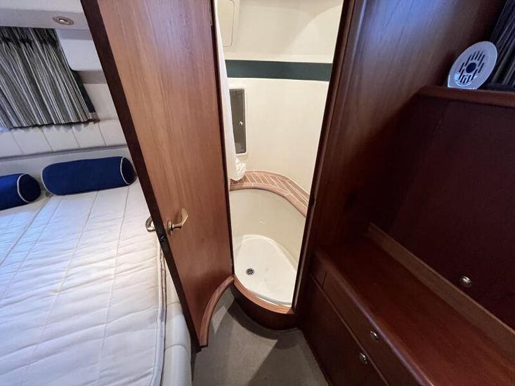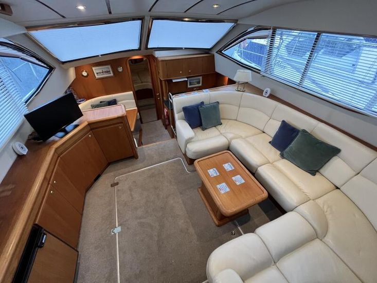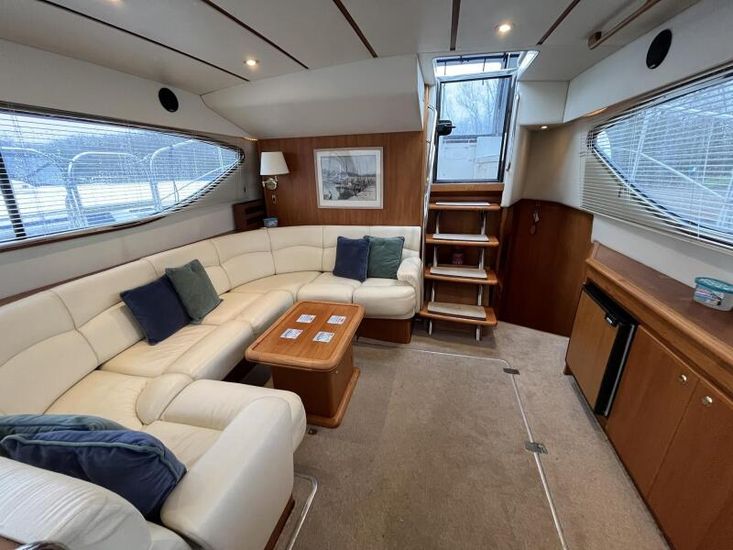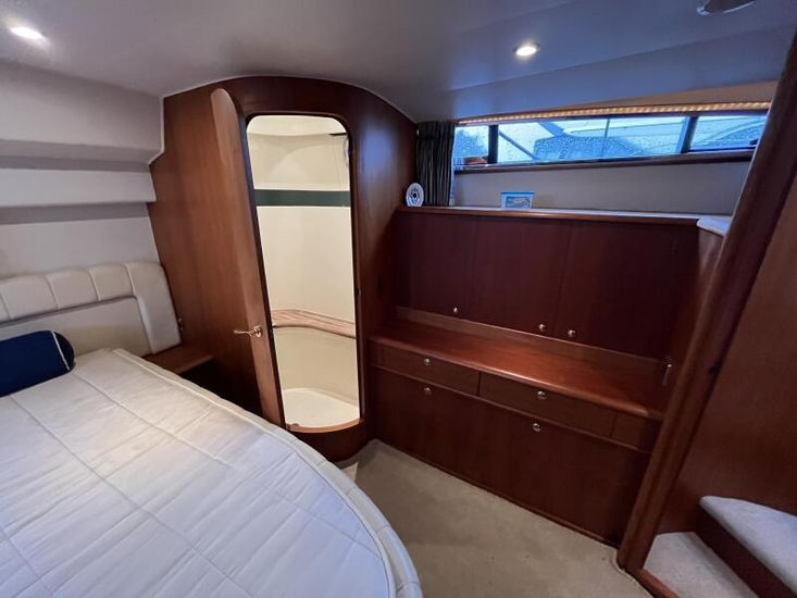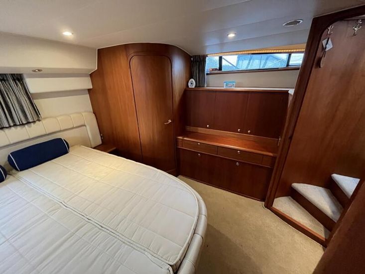 Broom 415 - 2001 - Powered by 2 x Caterpillar 3126 355hp diesel engines through shafts. Up to 6 berth accommodation over 2 cabins and saloon with 2 x toilet/shower compartments. island aft berth, spacious saloon, Specification including bow thruster, 4kw generator, electric windlass, warm air heating, shore power, battery charger, immersion, hinged radar arch, Boat Safety Certificate until May 2029. A lovely example of these very capable offshore cruisers.