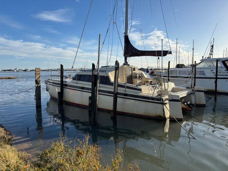 1981 Prout Sirocco 26 Catamaran, Yanmar 2YM15 15hp (2005) diesel with Sillette Sonic leg, wheel steering, 5 berths, 2018 survey, 3D RIB dinghy, recent switch panel, lots of gear, great value!